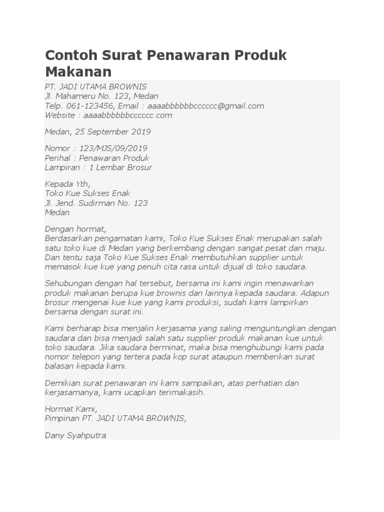 Surat diatas merupakan contoh surat penawaran kerjasama yang dikirimkan oleh pt. Contoh surat penawaran produk makanan (catering). Untuk meningkatkan produksi ataupun memecahkan suatu masalah, terkadang dibutuhkan kosultasi mendalam dengan. Contoh surat penawaran catering makanan. Pt nikmat rasa ruko bunga permai blok a3 no.